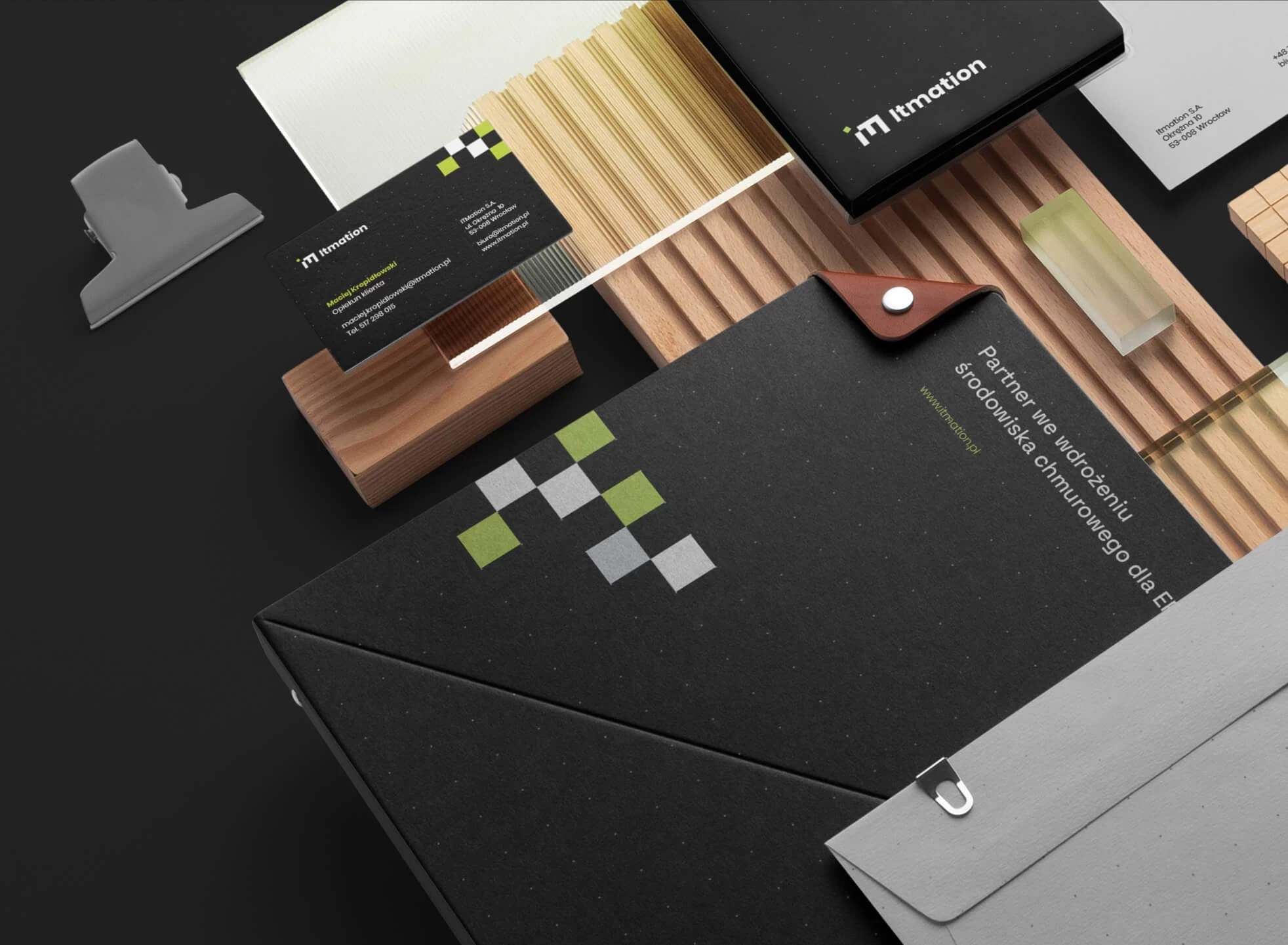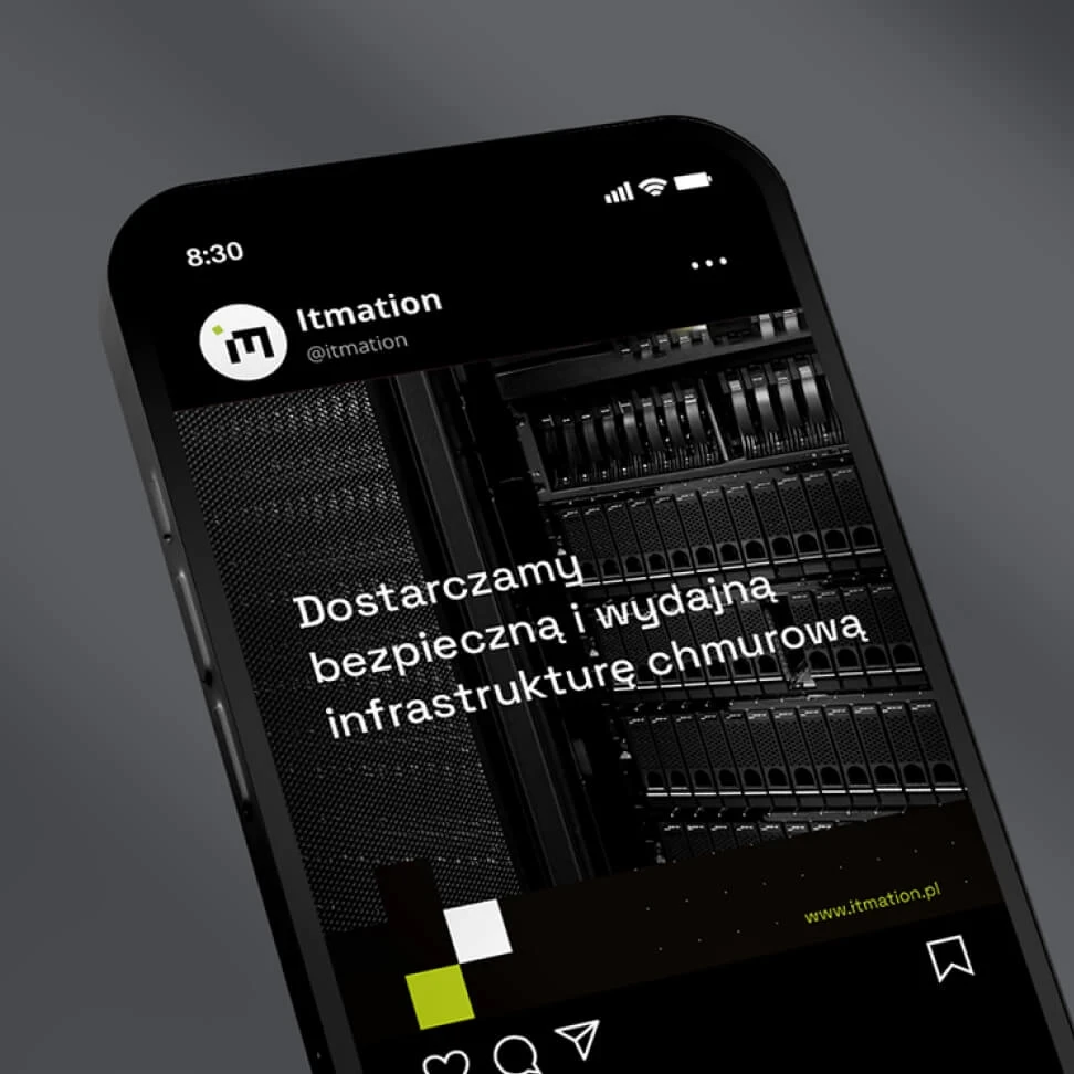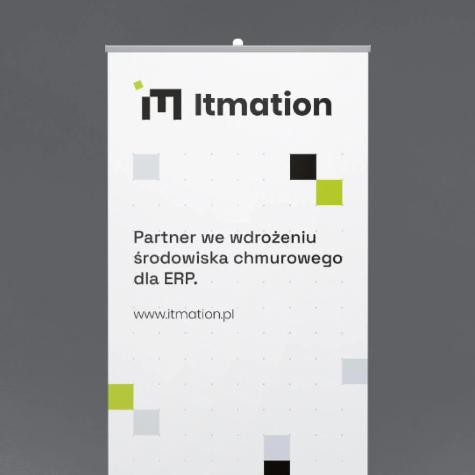 The graphic motif is based on squares arranged on a special grid. The composition is flexible and scalable, allowing the brand to grow in the future. So is the hosting service offered by Itmation.