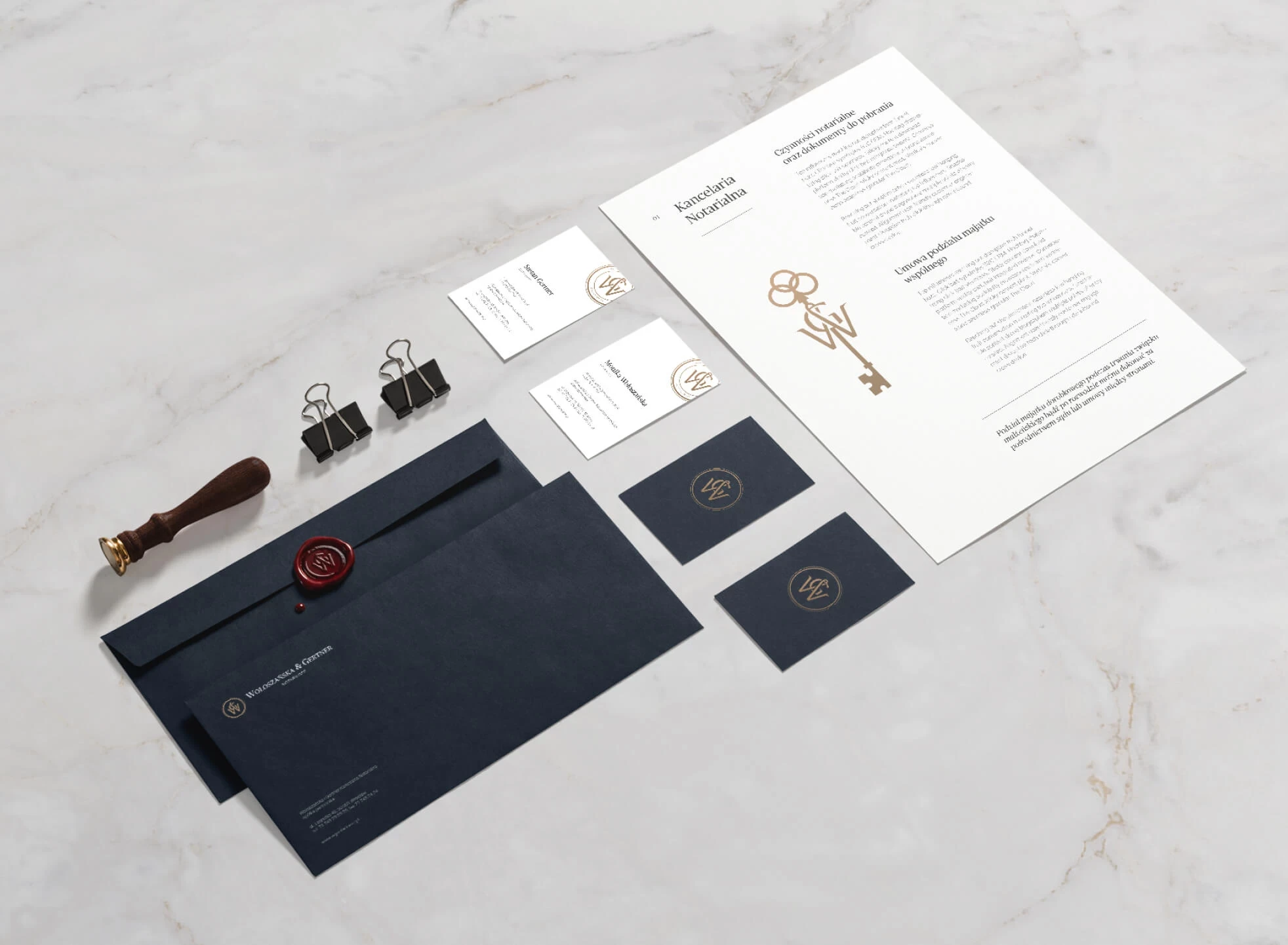 The tradition and solemnity of the notary function was our starting point. The goal for the final image design - modernity, simplicity and communication focused on philosophy, knowledge, experience and personal brand.